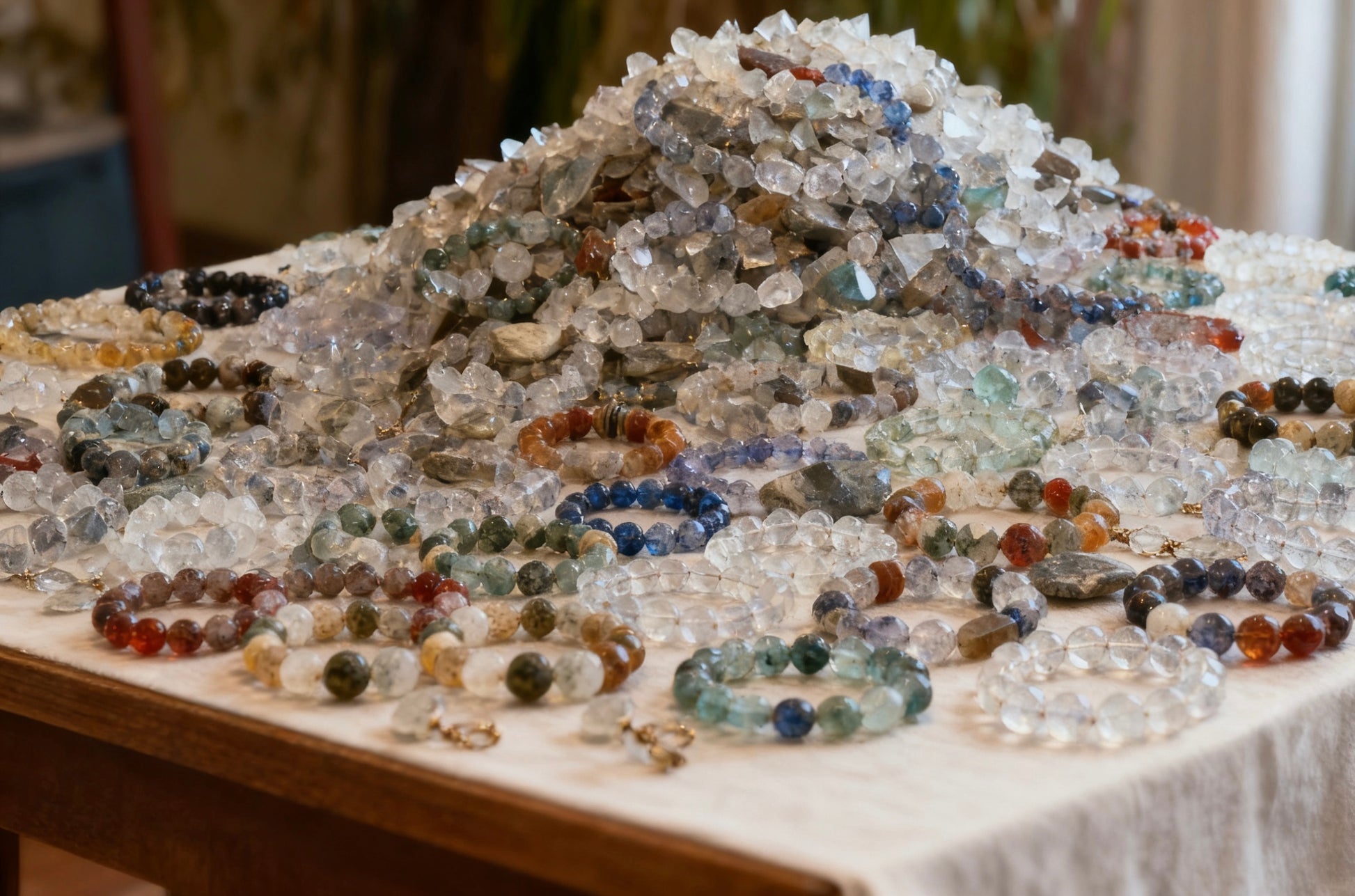 Hey crystal lovers! Look at this mountain of natural crystal strands—this is our Crystal Collection Mix, a total treasure trove for every gem enthusiast.